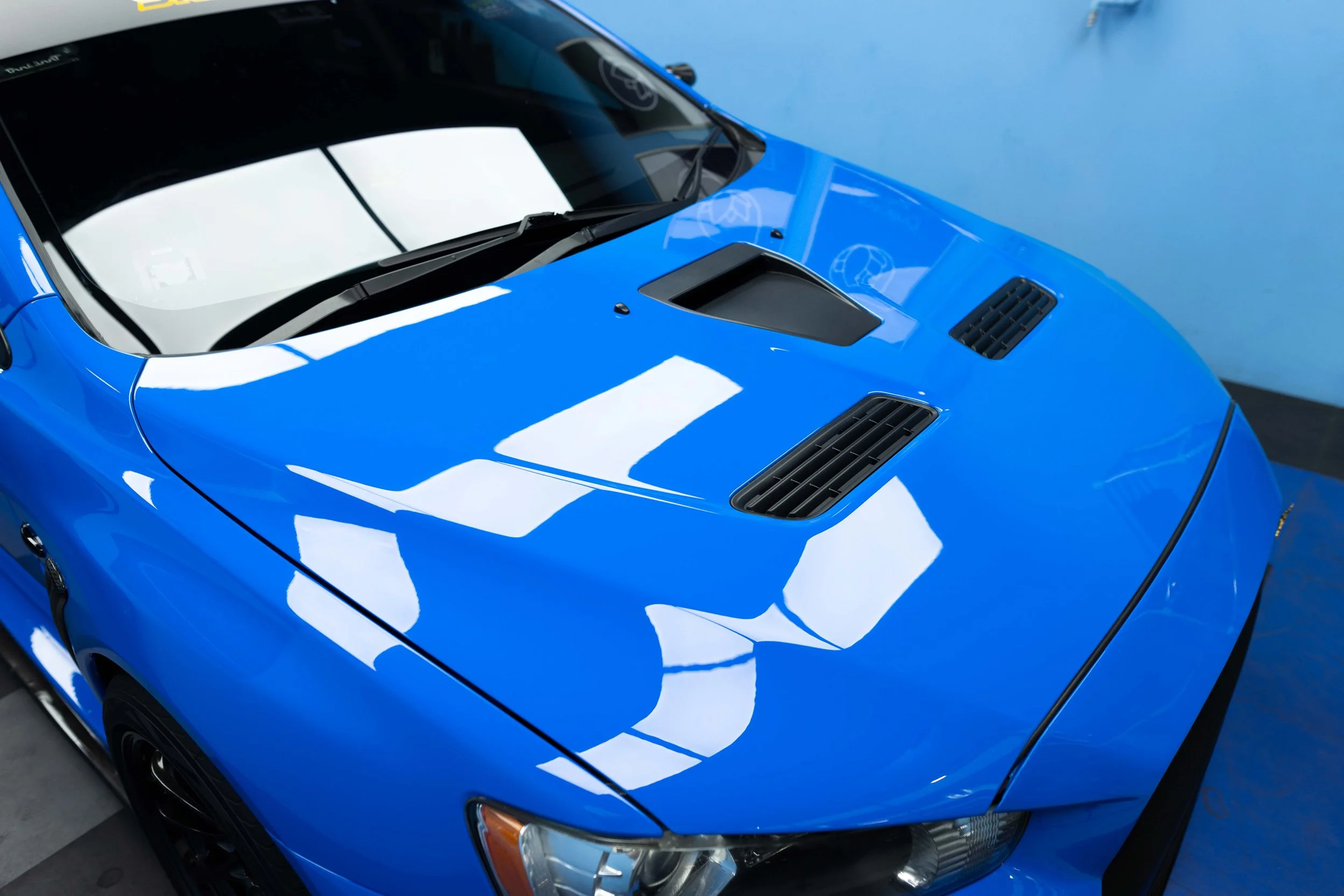 We carried out a thorough polish to eliminate various imperfections, including swirls and scratches. Following this, we applied a ceramic coating to protect the paintwork. As this Evo X will be used on the race track, the ceramic coating will provide an added layer of protection, reducing the likelihood of scratches and maintaining the finish.